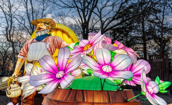 As dusk settles over the hills, guests are invited to wander illuminated woodland pathways filled with breathtaking hand-crafted lanterns, each glowing with color and artistry. These larger-than-life lantern sculptures are uniquely designed around the timeless story of The Shepherd of the Hills—bringing beloved characters, and Ozark folklore to life—while also celebrating the natural beauty, wildlife, and traditions of the Ozarks.