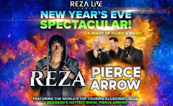 Ring in the New Year at the Reza Live Theatre with an unforgettable double-feature event combining world-class illusions, explosive live music, and high-energy entertainment. This special December 31st celebration brings together two of Branson’s most iconic performers for one massive evening: Reza and Pierce Arrow.