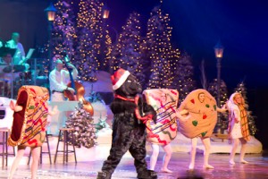 Other stars on the shows Christmas Tree include the beautiful harmonies of the “Warnocks,” in numbers such as “It’s the Most Wonderful Time of the Year,” and Dean Church playing the fiddle. His rendition of “What Child Is This” was a delightful introduction to his performance. The cast of Oh What A Night, A Musical Tribute to Frankie Valli and the Four Seasons which performs a morning show at the theatre, did a wonderful job with this writers favorites being “The Christmas Song” and their rousing performance of “Jingle Bells” complete with dancing reindeer. Oh and did I mention, that there is a special appearance by the “Cookie Bear” who actually dances with the “cookies” which it so eagerly seeks.