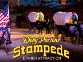 Billed as Branson’s Most Fun Place to Eat, Dolly Parton's Stampede is a restaurant and show like no other. Watch as 32 magnificent horses and a cast of top-notch riders thrill you with daring feats of trick riding and friendly competition. New this year is a breathtaking segment called Butterfly Dreams. Enter a magical world of winged horses, brilliant, blooming flowers and vibrant, colorful butterflies. Butterfly Dreams showcases a stunning aerialist display that combines equestrian stars and incredible aerial acrobatics. The show culminates with an emotional musical conclusion set to a patriotic salute of Red, White, and Blue—featuring Color Me America, written and recorded by Dolly Parton herself.
